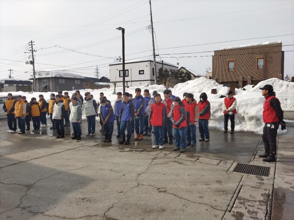 令和8年2月21日、青森市社会福祉協議会の依頼により、佃中学校の生徒の皆さんと一緒に浜館地区の一人暮らしの高齢者宅の除雪を行いました。当日は、4班に分かれて4軒のお宅の除雪作業しました。